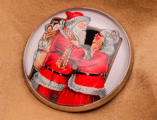 Mr. Mrs. Santa Claus Glass Dome Silver Metal Button 27mm