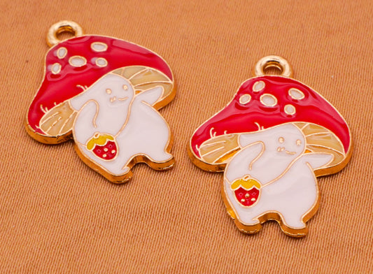 Mushroom Friend Strawberry Purse Enamel Metal Pair of Charms Embellishments 18x25mm