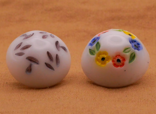 Mushroom or Flower Wreath Vintage White Glass Button Various 13-14mm