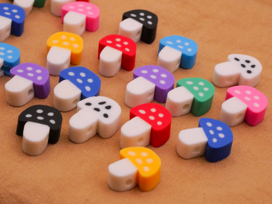 Mushroom Spotted Colorful Polymer Clay Set of Twenty Beads 10x12mm