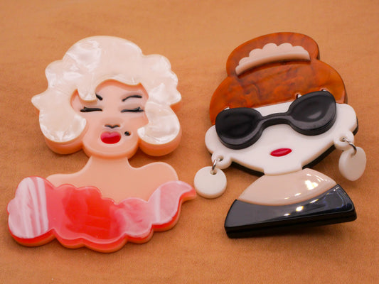 Movie Starlets Marilyn Monroe or Audrey Hepburn Large Acrylic Plastic Button Various 41-64mm
