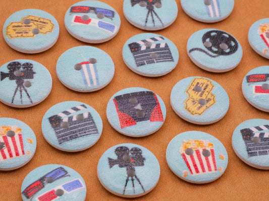 Movie Theater Themed Wood Set of Twenty Buttons 15mm