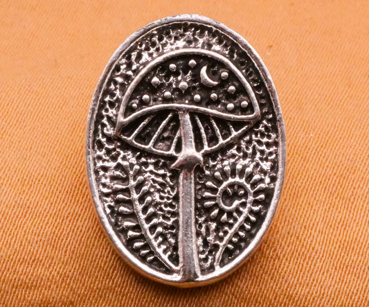 Mushroom Moon Oval Silver Metal Button 15x20mm