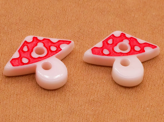 Mushroom Red White Plastic Pair of Buttons 12x15mm