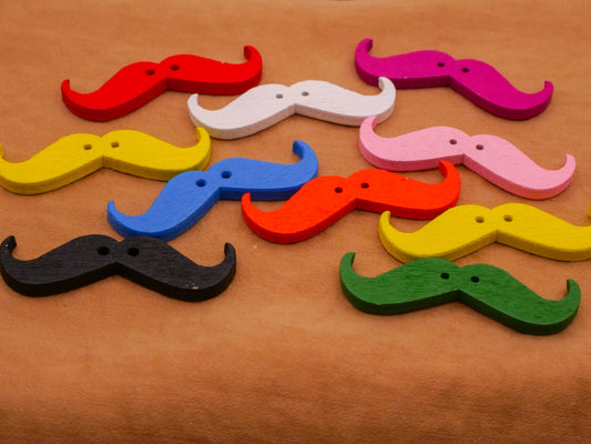 Mustache Colorful Wood Sew-Thru Assorted Set of Ten Buttons 22x35mm