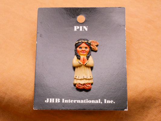 Native American JHB Vintage Painted Plastic Pin Brooch 17x32mm