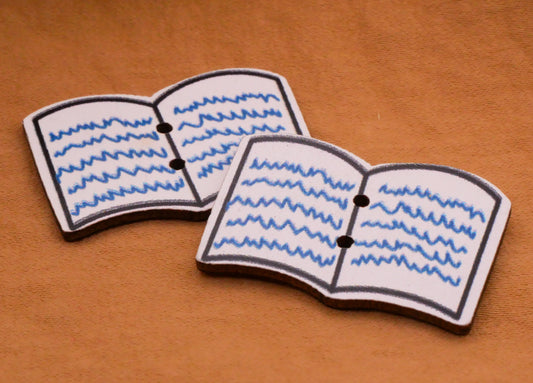 Open Book Writing Wood Pair of Buttons 21x30mm