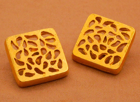 Organic Leaf Cutout Square Gold Metal Vintage Button 18x19mm