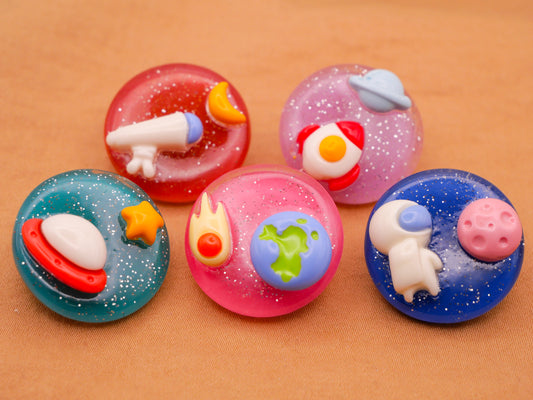 Outer Space Planet Moon Star Sun Rocket UFO Hand-Painted Ceramic Button Various 17-39mm
