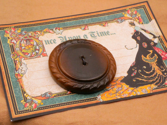 Once Upon A Time Brown Celluloid Early Plastic Large Carded Button 38mm