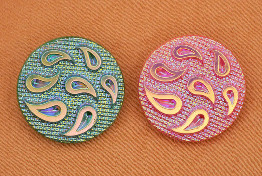 Paisley Raindrop Pink Green Vintage Czech Glass Button Various 23mm