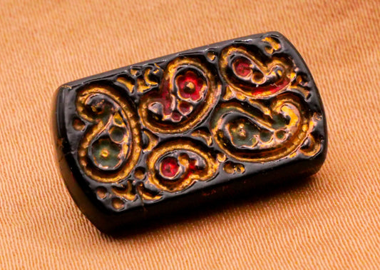 Paisley Hand-Painted Black Glass Antique Button Various 10-21mm