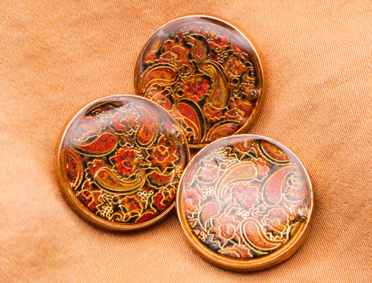 Paisley Red Pattern Resin Gold Metal Button 18mm