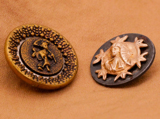 Paris Back Mark Scroll Flowers Antique Brass Metal Button Various 23-24mm