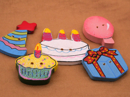 Party Cake Gift Balloon Wood Set of Five Buttons 19-34mm