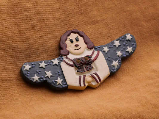 Patriotic Angel Wings Stars Art Stone Ceramic Button 25x48mm