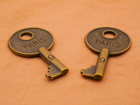 Paris Key Bronze Metal Pair of Charms Decorations 22x40mm