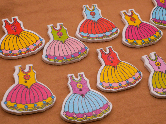 Party Dress Fashion Colorful Wood Assorted Set of Ten Buttons 29x30mm