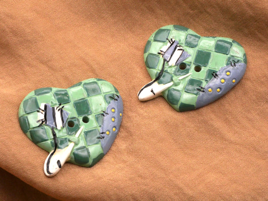 Patchwork Sewing Heart with Needle Ceramic Button 28x32mm