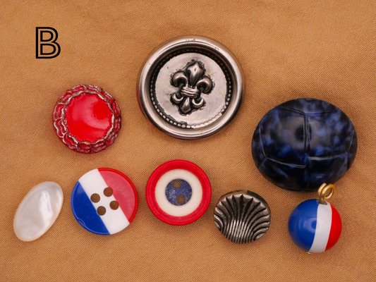 Paris France Glass Mother of Pearl Plastic Metal Set of Eight Buttons Embellishments 18-40mm