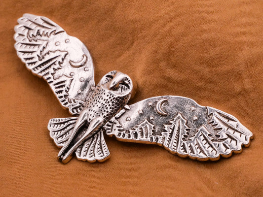 Owl Flying Moon Trees Large Double Shank Button 31x80mm