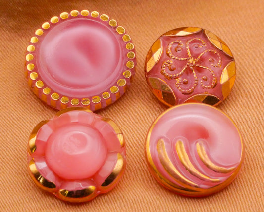 Pink Gold Accent Vintage Glass Button Various 18-22mm