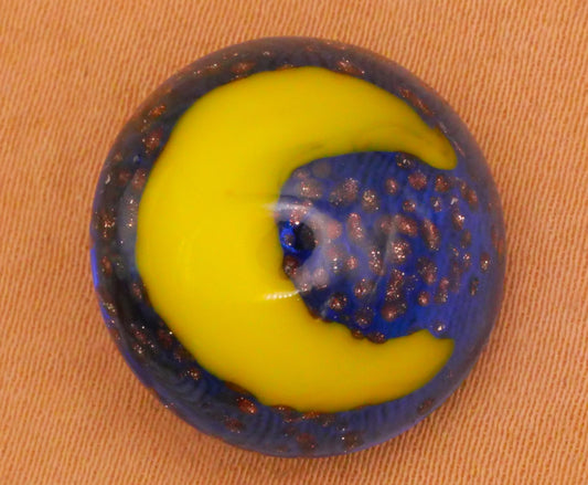 Crescent Moon Yellow Glitter Stars Lampwork Glass Button 19mm