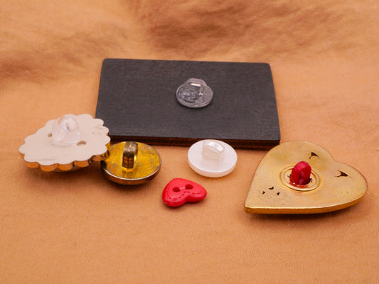 Valentine Postcard Hearts Rings Set of Six Buttons 9-51mm