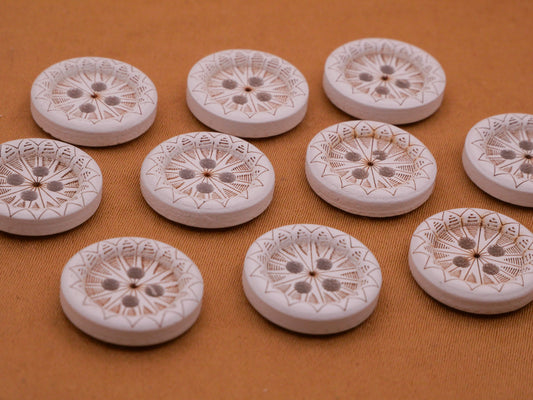 Snowflake Laser Etched White Wood Set of Ten Buttons 15mm