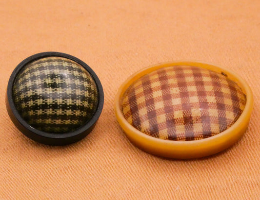 Plaid Fabric Look Celluloid Early Plastic Vintage Button Various 18-29mm