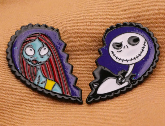 Nightmare Before Christmas Jack and Sally Heart Enamel Metal Button 29x31mm