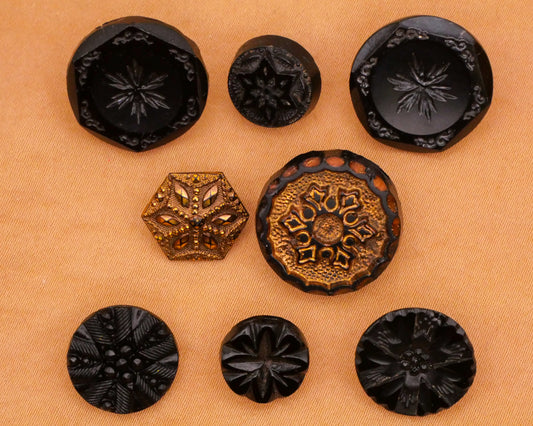 Snowflake Winter Black Glass Antique Button Various 11-18mm