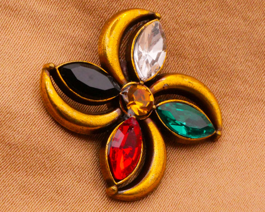 Pinwheel Fan Christmas Colors Rhinestone Metal Button 20mm