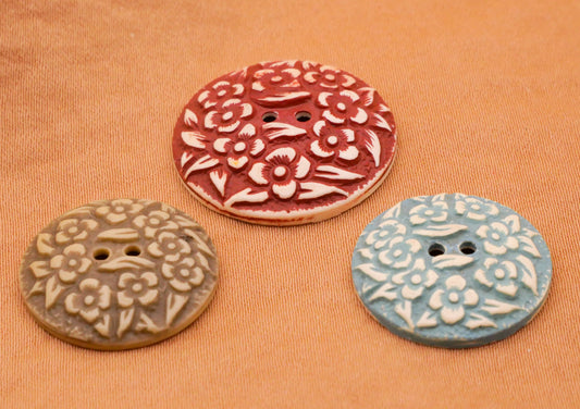 Buffed Celluloid Flower Wreath Tan Red Blue Vintage Button Various 19-22mm