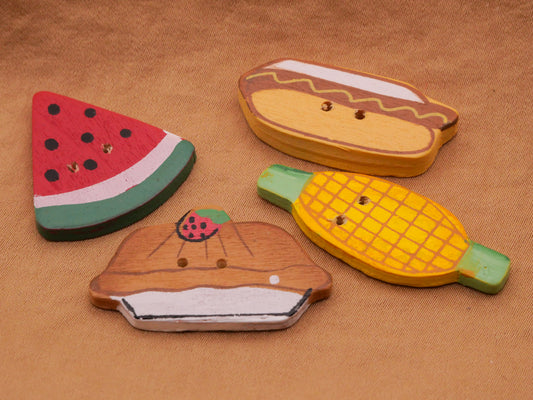Picnic Food Watermelon Pie Hotdog Corn Wood Button Various 14-36mm