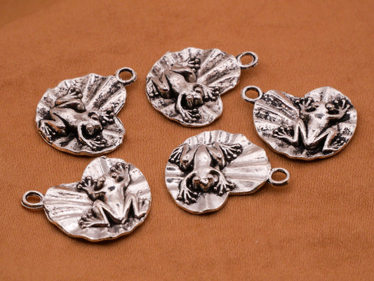 Frog Lily Pad Silver Metal Set of Five Charms 15x20mm