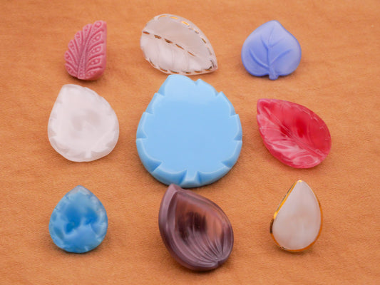 Leaf Leaves Blue Pink Purple White Vintage Glass Button Various 10-26mm