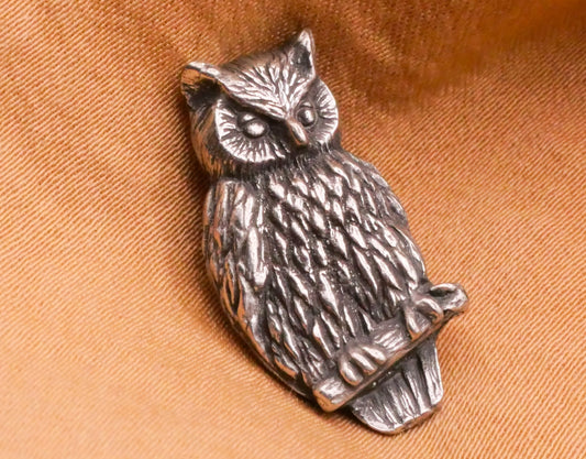 Owl Bird Danforth Pewter Realistic Metal Back Mark Button 12x23mm