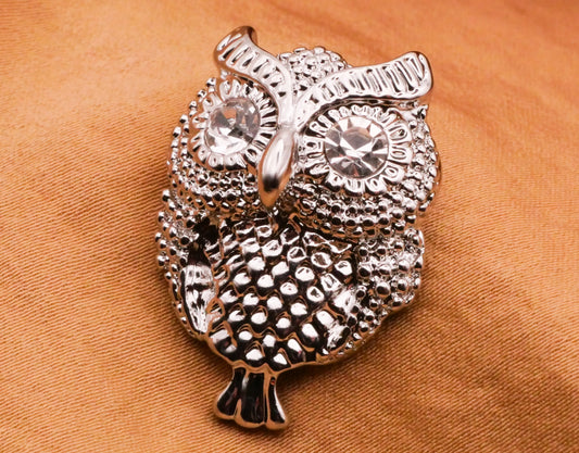 Owl Bird Rhinestone Eyes Silver Metal Button 20x28mm