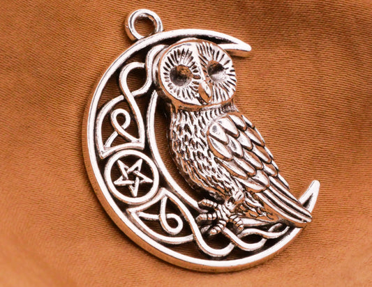 Owl Bird Crescent Moon Star Silver Metal Large Pair of Charms Embellishments 25x33mm