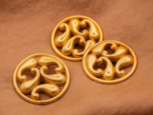 Paisley Comma Pierced Look Gold Brass Metal Vintage Button 25mm