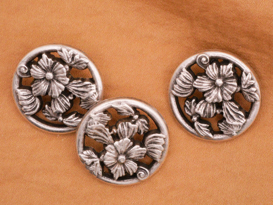 Flowers Circle Pierced Look Antiqued Silver Metal Button 23mm