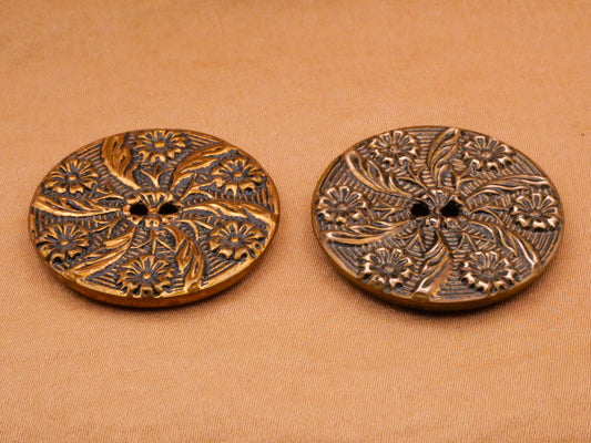 Flower Leaf Fan Victorian Metal Sew-Thru Button 29mm