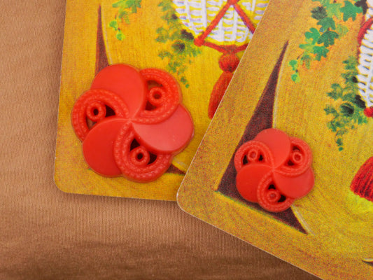Swirl Pierced Red Plastic Hanging Plant Playing Card Vintage Button Various 15-22mm