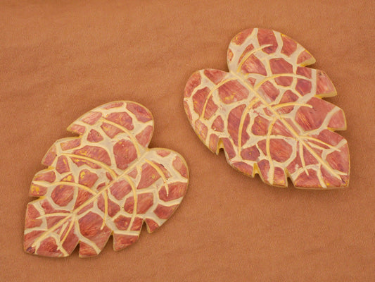 Tropical Leaf Carved Hand-Painted Vintage Wood Large Button 36x48mm