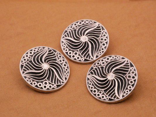 Flower Leaves Swirl Carved Look Silver Metal Button 23mm