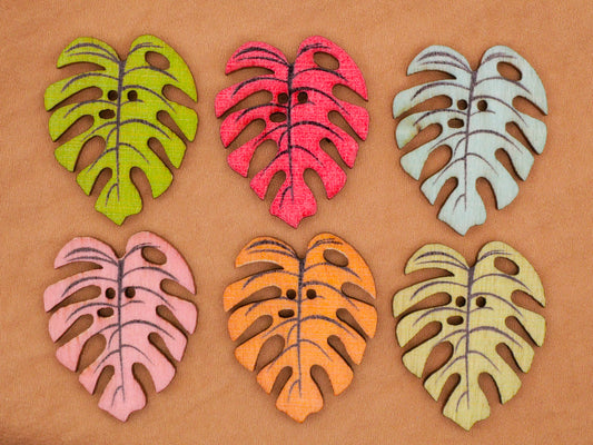 Monstera Leaf Leaves Colorful Wood Set of Ten Buttons 24x29mm