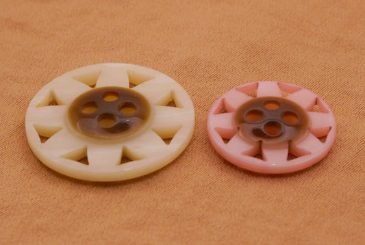 Daisy Flower Ivory Pink Pierced Vintage Plastic Button Various 15-20mm