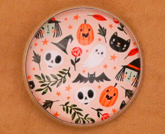 Halloween Pattern Witch Bat Skeleton Glass Dome Silver Metal Button 27mm