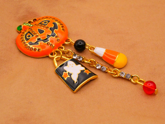 Jack-O-Lantern Moveable Rhinestone Enamel Metal Button 26x75mm